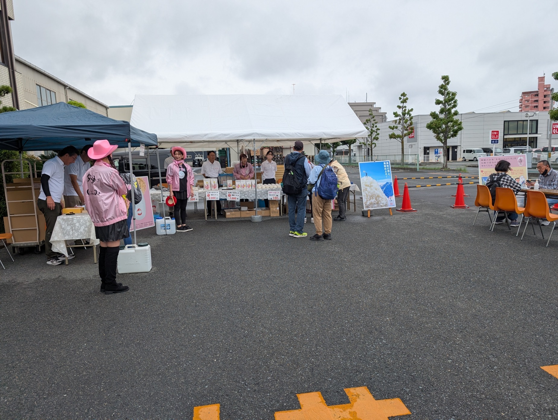 弊社では、女神のほほえみを含む4種類のお米の試食会&採れたての野菜や果物などの販売を行い、一番美味しいと思ったお米に、割り箸を投票して頂きました(*^_^*)